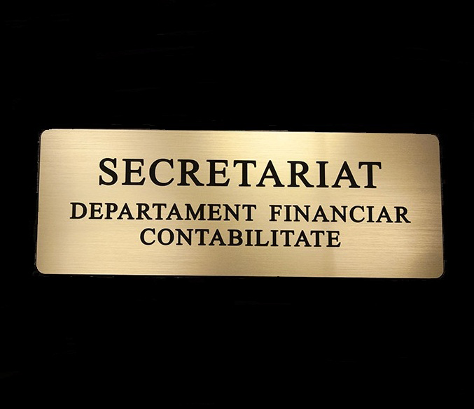 Producem placi gravate Laser de orice tip, simple sau cu volumetrie, atat pentru interior cat si pentru exterior, precum placi gravate acrilice, din plexiglass, aluminiu, alama, inox, lemn etc.